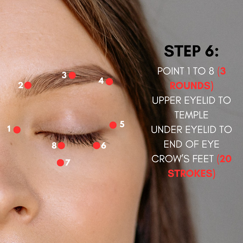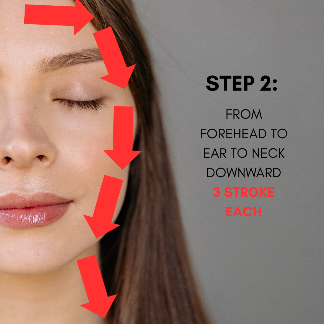 - Glide the gua sha comb gently upward and outward along the face, neck, or scalp.
